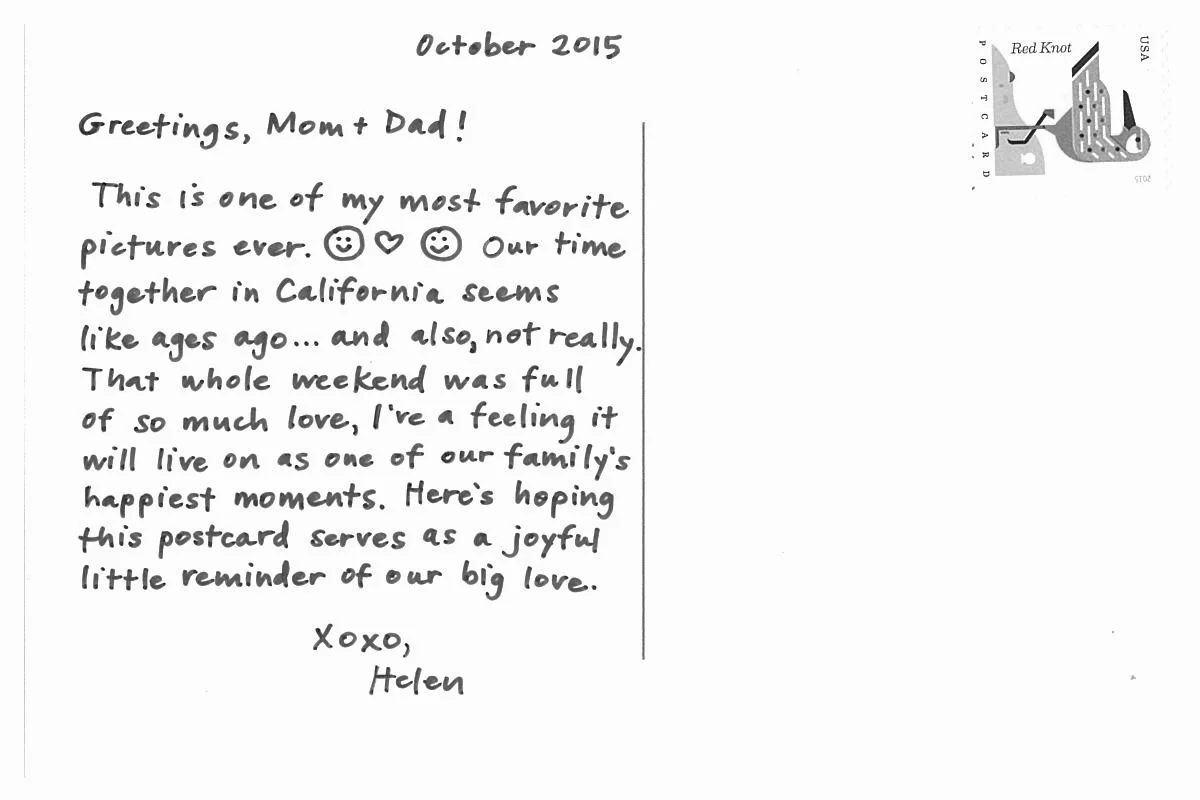 This is one of my most favorite pictures ever. :) <3 :) Our time together in California seems like ages ago...and also, not really. That whole weekend was full of so much love, I've a feeling it will live on as one of our family's happiest moments. Here's hoping this postcard serves as a joyful little reminder of our big love.