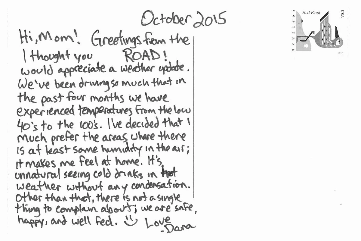 Hi, Mom! Greetings from the road!