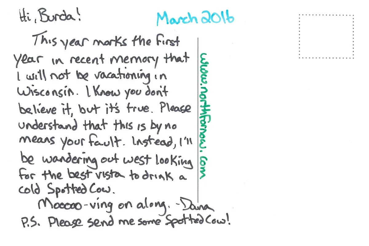 This year marks the first year in recent memory that I will not be vacationing in Wisconsin. I know you don’t believe it, but it’s true. Please understand that this is by no means your fault. Instead, I’ll be wandering out west looking for the best vista to drink a cold Spotted Cow.